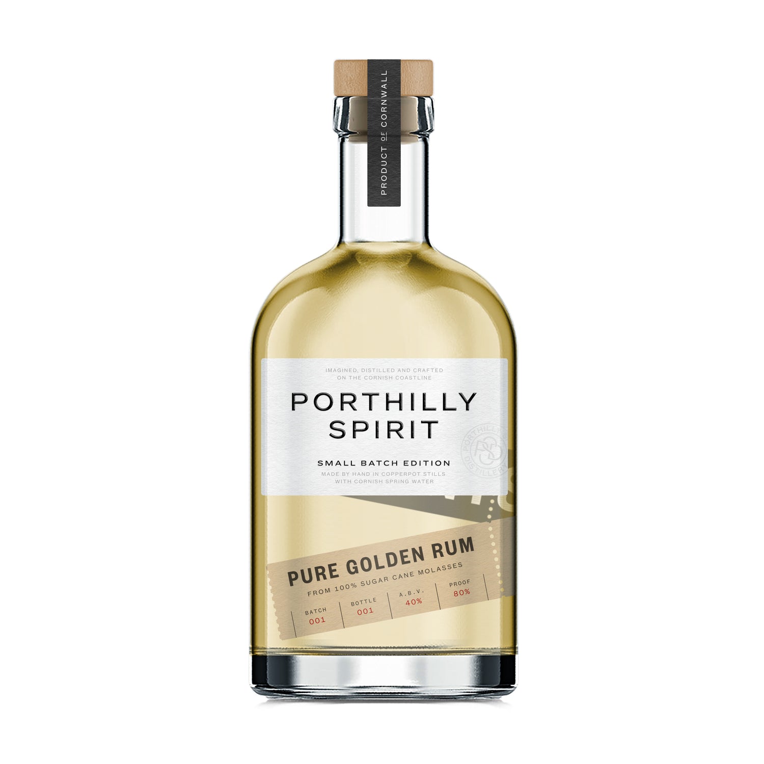 Porthilly Spirit Golden Rum begins life as a wine made from fermented sugar cane molasses before being distilled in 200L handmade copper stills. Next we blend this spirit with pure Cornish spring water. Our rum has a light golden tone and notes of vanilla, tobacco and salt caramel.